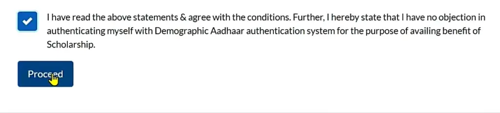 Tick the checkbox confirming you agree to Aadhaar authentication. Click the Proceed button