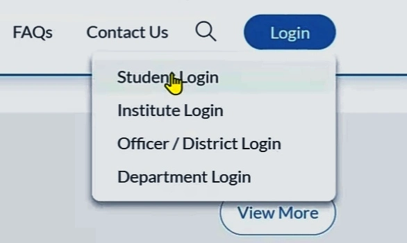 On the top-right corner, click Login. From the dropdown menu, select Student Login.